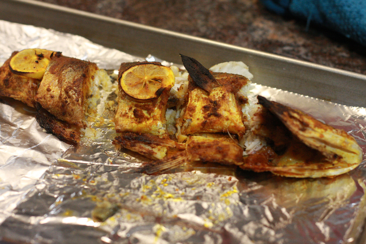 The marinade is very simple but I prefer to apply the marinade on the fish and let it sit for at least 4 hours before it goes in the oven. If you are in a rush you could bake it right after you apply the marinade but the test and texture of the fish might not be the same. The great thing is the fish came scaled and cleaned so there was no time spent on that.